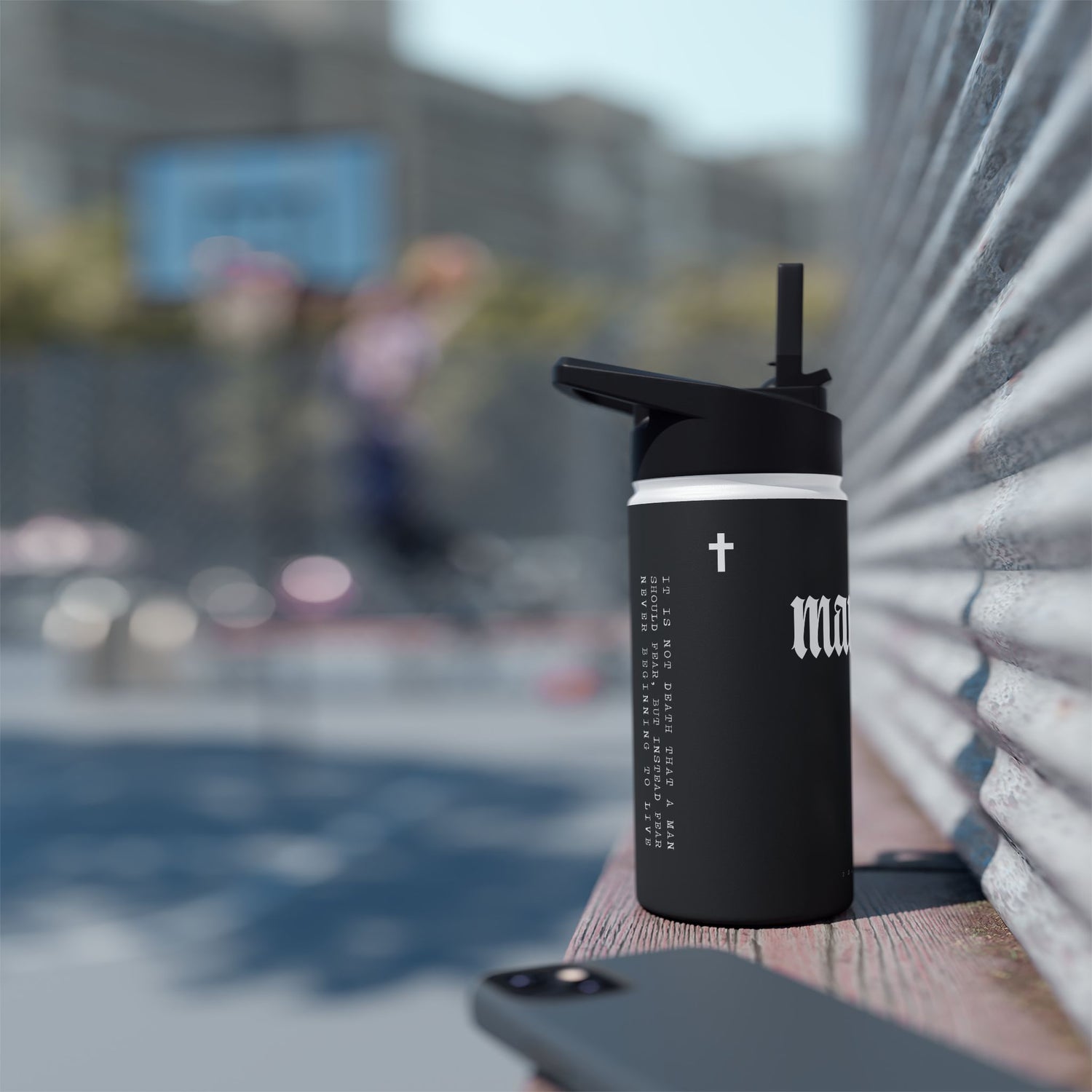 This bottle is a reminder with you every day to not fear death, and to live life to your fullest potential and find our strength in christ.